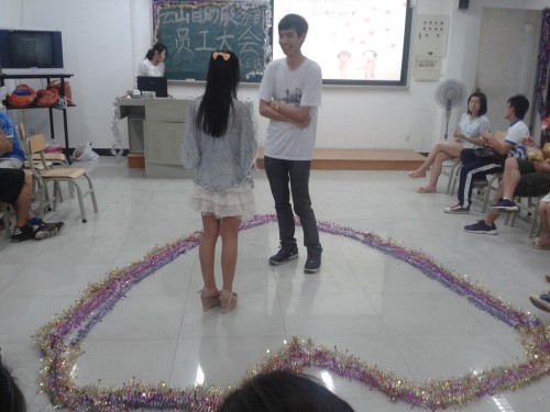 本网讯5月18日晚,云山自助服务部(南,下简称“自助”)在教学楼A栋举行了5月份员工大会以及老员工的欢送会。出席本次大会的除了有自助在职员工和考察期员工,还有部分已经离职的老员工。本次大会由自助经理张靖韵和副经理黄嘉仪主持。