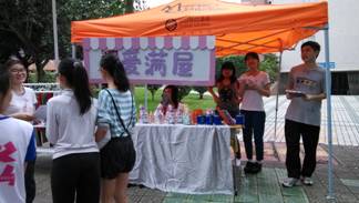 5月8日到9日,爱满屋就开始了活动的海报,微博宣传;5月10号进行在12栋前校道“给她,你的爱”母亲节爱心促销活动,这个活动让广外学子学会感恩,提供一个平台将爱落实到行动。
