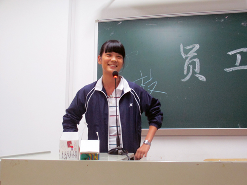 副经理詹玲玲对考察期员工说道:“选择一段路程就走出一段风景。你们选择茶坊是我们的荣幸,而你们能进入茶坊也是我们对你们的信任。”又说道:“茶坊教会了我自信,当你把脸丢尽了就什么都不怕了。我希望大家用心去感受茶坊的家文化,给理想一点时间,给成长一点空间。”同时,她强调“温情”一词,“对生活多带点温情,我们在这个世界上不是为了生存而是为了生活。对周围的人充满爱,生活才会充满阳光。对周围的人多点温情,你的人生才会有温暖。多一点包容多一点宽容,你会发现你怎么看世界世界怎么看你。”一句句意韵深刻的哲理让大家感悟颇深,也赢来了热烈的掌声。