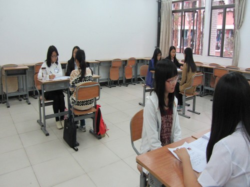 3月14日下午两点到六点在六教B305,306举行正式的面试,在楼梯口处有兼职办的工作人员负责指引学生。学生签到后,陆续进入等候室等待。在等候室里,有的同学显得紧张,正忙着与旁边的同学交流面试经验与面试技巧。有的则比较轻松,闭目养神。听到自己的名字后,面试者开始进入面试室面试。每个面试室有四位面试者进行面试。面试室里,每个同学都认真冷静地回答面试官的问题。一位面试者结束面试后便又由兼职办的工作人员指引下一位面试者进场。现场面试的人很多,但在兼职办工作人员的指导下,场面十分有秩序。