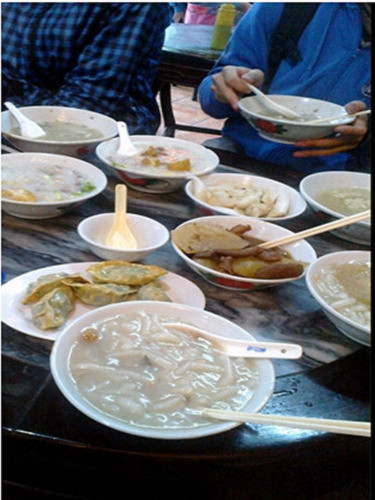 逛过玩具广场及周边商铺后,时间已接近13:00,“导游”便带领着团员们坐公车来到下一站——西关美食街。拥有极高人气的美食街此刻正是最繁忙时段,部员们几乎找不到座位。在耐心等待之后,终于品尝到了极富特色的西关濑粉,冰凉嫩滑的椰汁冻膏,香喷喷的煎饺,酥脆爽口的甜薄饼等食物。美味可口的西关美食既让团员们过了嘴瘾,其诱人的外表和繁多的品种又让部员们大饱眼福。