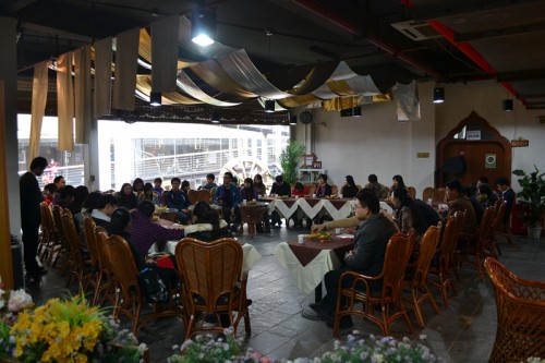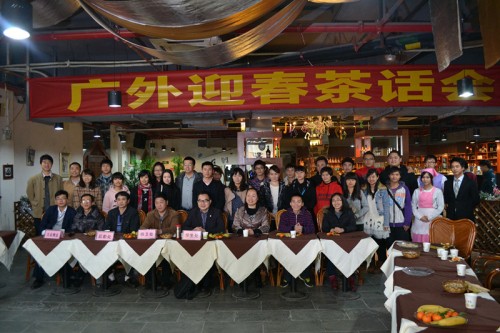 本网讯1月18日上午,一年一度的广外新春茶话会依旧在云山水榭(南,下简称“水榭”)举行。校领导对留校学生代表致以新春慰问,并提醒留校学生相关留校安全事项,表达校领导对留校师生的关怀。校学生处处长植秀聪、副处长黄晓梅,学生处、保卫处、后勤处、团委的各部门代表以及各学院辅导员和留校学生代表欢聚一堂。