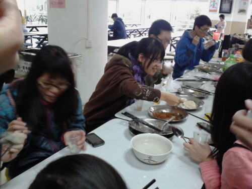 随后,本次活动最为激烈最为壮观的一幕出现了。热腾腾的饺子才刚上桌,员工们便拿起筷子蜂拥而上。看到这一桌的饺子被“抢”完了,有的员工就跑到另一桌再“抢”,一大盘饺子瞬间就被消灭了。期间欢声笑语不断,为原本处于紧张的期末气氛下的员工们增添了几分缓意,更是让远离家乡在外求学的Adongers感受到一种家的温暖。