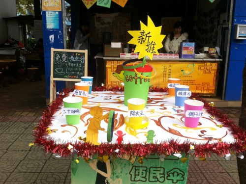 为让“咖啡”华丽隆重地登场,凉茶坊员工做足功课。动人的免费试饮形式,新颖的宣传品——“茶坊茶品套圈圈”,以及显眼的宣传横幅,引来了不少“爱啡之士”。