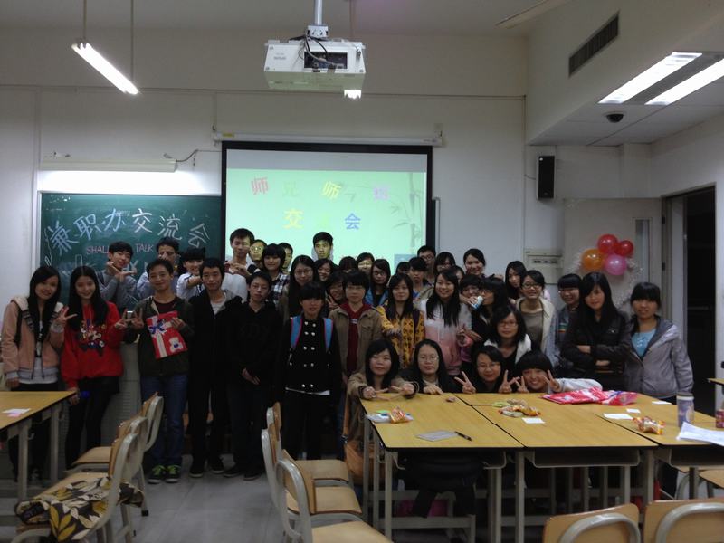 Shall we talk,why not?本场交流会在热烈温馨的氛围中圆满落幕,会后经理向师兄师姐赠送礼物表示感谢,大家合影留念。今晚大家都颇有收获,师兄师姐宝贵的意见与经验、丰盛的奖品以及加深的情谊。今晚,注定难忘!