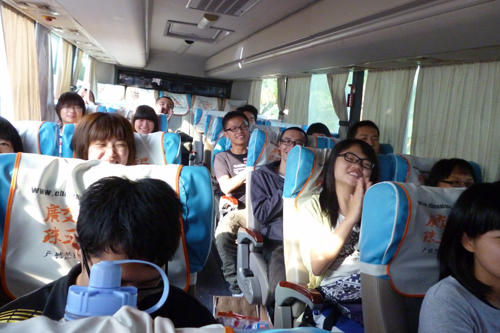 上午8点时分,公车迎着旭日欢畅前进,公车里的歌声、笑声、掌声远远盖过了路边的汽笛声。一个员工手里拿着麦克风尽情地为大家献上一首首动听的歌曲,听众也随着唱和起来。接着一个接一个不负众望地献歌,迎来了阵阵掌声和欢呼声。更令人兴奋的是游戏环节,每人抽一张牌,并有一次叫牌和被叫牌的机会,叫牌的人就要烤鸡翅给被叫的人吃。接着一股股“在一起,在一起”的热潮一涌而至,逗得大家哈哈大笑但也不排除有人脸红了。看着大家比阳光还灿烂的笑脸,不得不承认公车是凉茶坊的另一个乐园。