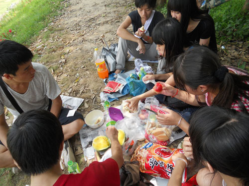 激烈的“定向越野”过后,便是大家十分期待的午餐环节。虽然大家在寻宝过程中跑得精疲力尽,但丰盛的午餐却让大家精神了起来。各个小组都精心准备了“特色”午餐,M记、爱心三文治、外卖、零食、饮料、水果等等,大家不仅获得视觉上的享受,也感受了一次“舌尖上的野外”!大家围坐成圈,边吃着丰盛的午餐,边讨论着刚才寻宝时发生的趣味事,不时传出一阵阵笑声。在整个午餐过程中,港人的欢声笑语不断,洋溢着夏日的欢乐气息。