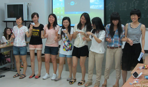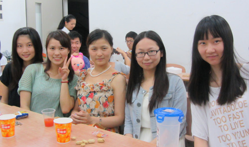陈朝滨与兼职办员工一同参加抢“麦”游戏