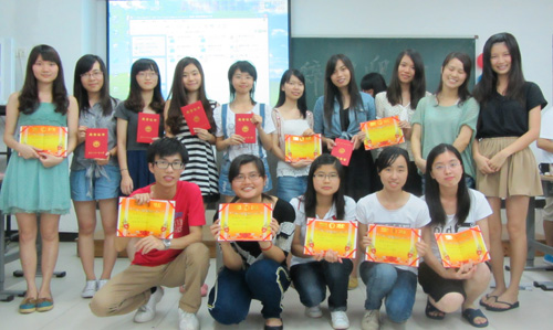 原副经理、08级的张梦洁出席晚会。图为兼职办三任经理合影