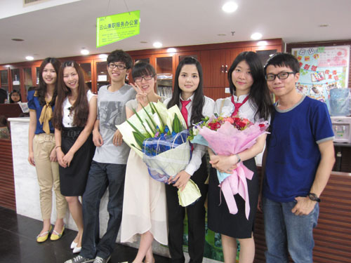本网讯 4月26日,多名08级员工回到云山兼职服务办公室(北,下简称“兼职办”),与现任兼职办员工小聚,并拍照留念。刚刚结束论文答辩的中文学院的老员工们抱着花束,整装归来,等候多时的新老员工争相与他们合影。