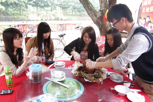 最令众人兴奋的还是各式美食。村里几乎每一间食肆都留下了兼职办员工的身影。手磨芝麻糊、双皮奶、咸肉粽、乞儿鸡、艇仔粥……大家尽展“吃货”本色,不曾放过任一式小吃。