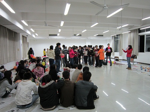 游戏以分组的形式进行。每组队员经过热烈的讨论诞生本队队名。各组队名妙趣横生,如“金陵十三钗”队、“3B”队、“吃货”队,更有取名叫“压力山大”的。每队的特点和创意在队名上体现得淋漓尽致。