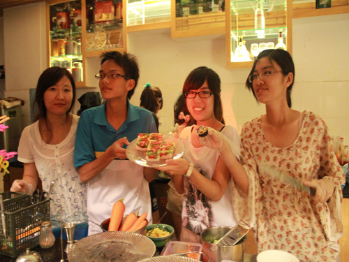 晚上营业结束后,小站员工们换好工作服,舞刀操铲地制作日本寿司和料理。在一番辛勤烹饪后,全体员工一边津津有味的品尝着自己做的料理,一边谈天说地,乐在其中。