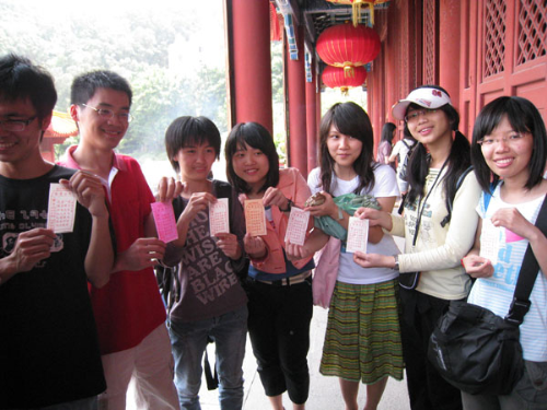 “南沙天后宫”,最终,员工们到了最后一站,也是最精彩的一站。背倚高山,面朝珠江入海口,美丽感人的故事,独特的妈祖文化和宫殿建筑,这一切都让大家痴迷。员工们登宫殿、敲翠钟、瞻神像、求平安、上宝塔,尽情享受身边的美景,同时也增进了彼此的了解。在许愿树下,所有员工写下对报亭的祝福和对未来的期望及自己的名字,然后把许愿球抛上许愿树,并在妈祖的佛像前留下了第二张集体照。