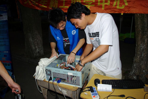 此次义修数码港共派出约20名电脑技术人员,包括数码港经理和几个主管都一起参加了义修!在短短的一个下午总共为北校师生维修了约50台电脑。据了解,北校的很多同学往往花了三四十块把电脑搬到校外维修,有时候还未能彻底解决问题,相对比一下,南校数码港的收费低很多。