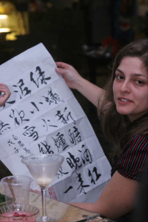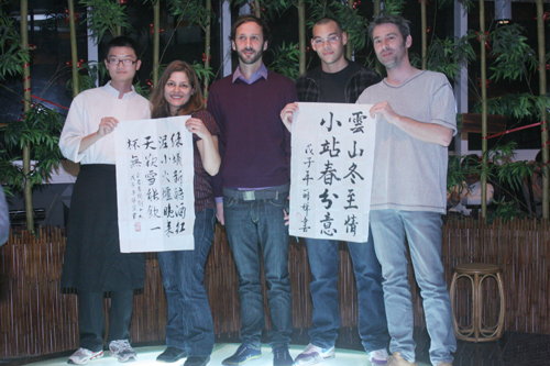 其后还有古筝独奏与书法表演相结合的节目,高远宁静的音乐仿佛缓缓地从笔尖流出,使人心境平和了许多。最后,小站将完成的字画赠予几位来自法国的客人。