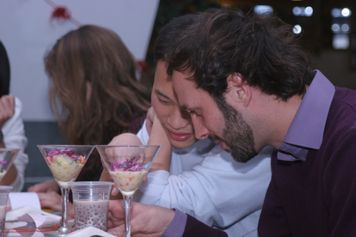 法国友人对当晚精美的食物颇感兴趣