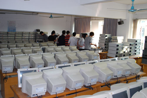 广外学生勤工助学中心党支部也积极响应“城乡统筹共建”活动。11月27日,云山数码港派出一支义修队伍义修我校废旧电脑以支援四会山区小学的网络教育发展。