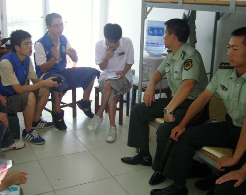 同时据任营长的介绍,今年的新生军训教官们在学校各级领导的指导下进行了改进,结合了汶川地震的教训,增加了紧急救护和防震训练,具有与时俱进的精神。