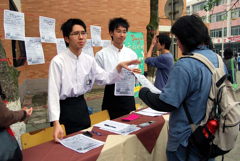人来人往的校道上,小站的员工们穿着统一的工作服或是微笑着向同学们派发宣传单,或是在摊位前耐心地为前来咨询的同学讲解。据悉,本次活动的一个亮点就是新会员卡的发布。已经是小站会员的顾客只需加3元工本费,即可获得一张新版会员卡。非会员只要在小站内消费满50元,另加5元亦可获得一张新版会员卡。小站摆摊宣传期间,许多会员当场填表换取新版会员卡。另外,很多非会员也纷纷表示愿意去小站尝试新品,并办理会员卡。