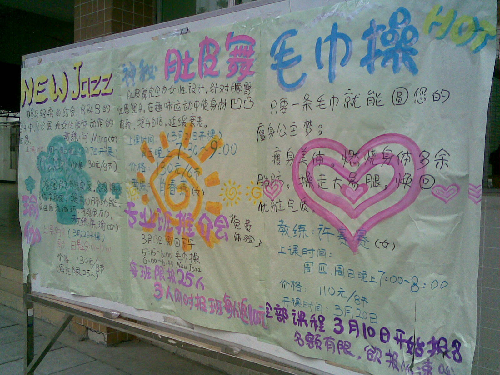本期健身室专业班不仅保留了上期热门的NEW JAZZ和美容纤体瑜伽,而且为了迎合年轻人的需求,推出了两个新的专业班:肚皮舞和毛巾操。