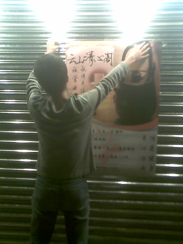 今天下午四时许,云山清心阁的后期准备工作仍紧张地进行着。记者到达现场时,工作人员正忙着完成布置,点货,分类,挂海报,排列货品。他们都表示,虽然工作繁重,但是想着马上就能开业,服务师生,再忙也值得。