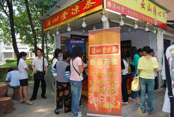 本网讯10月18日上午十点半,位于学生公寓13栋正对面的凉茶坊——云山清心阁正式开业。