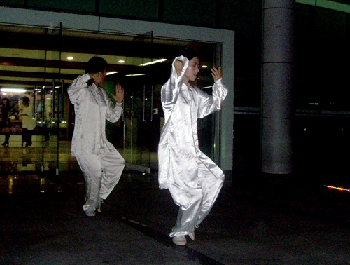 月光朦胧,灯光闪烁,烟火璀璨。在众人的喝彩声中,武协的表演拉开了本次活动的帷幕。双截棍的速度之快、女子防身术的巾帼气概赢得了在场观众的连连惊叹。之后,在舒缓的音乐声中,太极拳、武当拳进一步展现了中国武术的博大精深。