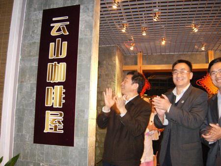 许国彬副书记与顾副校长一起为水榭开张揭幕。这历史性的时刻标志着一直“犹抱琵琶半遮面”的云山水榭咖啡屋,经过许多人近三年来的努力,终于揭开她的大红盖头,以优雅,大方的姿态向我们款款走来。