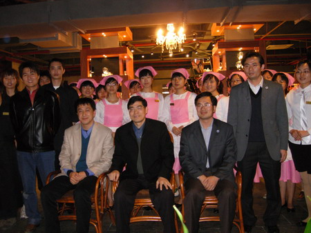 在参观完大厅和六个KTV房后,顾副校长对咖啡屋一流的音响设备产生极大兴趣,兴致高昂的他当即表示要与东语学院林绍雄书记合唱一曲,表示对咖啡屋开张的祝贺。顾副校长的日语版《北国之春》与林书记的中文版《北国之春》响彻K房,为水榭增色不少。歌毕,顾副校长盛赞咖啡屋音响效果非常好,“水榭整体都不错,很好。”