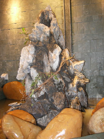 云山水榭门前有一个大大的水池,据负责人介绍,将会在池内养殖金鱼,并在水池周边摆设绿色的盆栽;另外,楼梯、走廊等通道也会以花卉盆栽或雕塑修饰,使云山水榭咖啡屋的外观更加清新自然,让顾客健康愉快地休闲、娱乐。