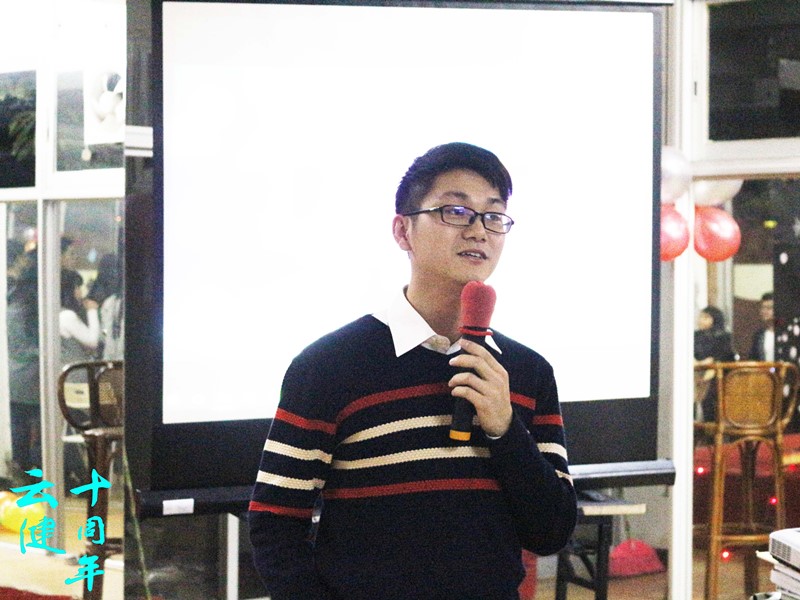 林宏昆经理向来宾表示了热烈的欢迎以及衷心的感谢过后,简单介绍了云健的经营情况,并表达了对云健未来得到更好的发展的期盼。08届经理陈文聪以及刚毕业的老经理黄晋硕分享了他们在云健的经历、成长,表达了他们对云健的感谢和期盼,并带在场云健人回顾了云健的发展历程,肯定了云健家文化的不断发展,表达了他对云健美好的祝愿和期望以及对本次活动派对的赞赏。