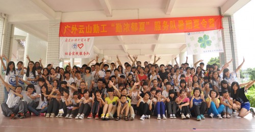 云山勤工“勤浓郁夏”与学生们合照:记得保持微笑