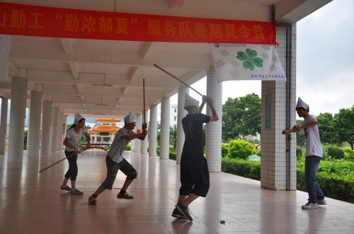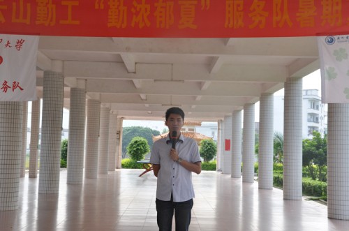 本网讯 “我们要与连滩中学立个‘三年之约’”,7月25日,在带队老师黄星的总结致辞中,广外云山学生勤工助学(下简称“云山勤工”)“勤浓郁夏”三下乡服务队(下简称“勤浓郁夏”)在郁南连滩中学开展的形式丰富的文艺汇演拉开序幕,云山勤工三下乡带队老师黄星、连滩中学练钟强书记及参加本次夏令营的连中学生到现场观看汇演。