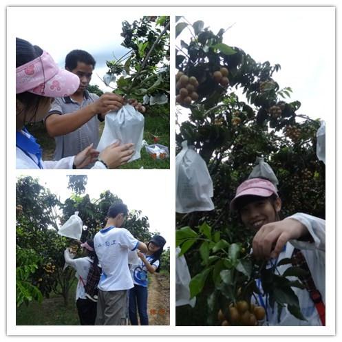 其中一支分队来到河口中学附近的一个丰收果园。果园主正忙于为黄皮扎上专门定制的防水防虫纸袋,以防蜜蜂叮蛰。他还热情地教组员们如何正确给黄皮扎袋。经过询问,调研组得知果园主的无核黄皮大多是本地消化,因为肉甜无核,很多人将其作为礼品送人。当地政府也为果农们举办了黄皮节,为黄皮的销售提供了更为便利的条件。虽然黄皮节的举办会给黄皮带来更多的销量,但其保鲜运输仍是一大问题,这为调研组提供了不少思考方向。