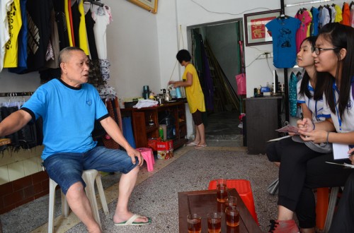 “飘色主要以神话故事题材,塑造人物形象,活灵活现地再现故事情节”,朱老先生围绕组员们提出的关于飘色的来源和发展等问题一一解答。目前飘色这门民间艺术已申报为广东省非物质文化遗产,连滩的飘色技艺发展可与吴村和沙湾并驾齐名。组员们分工明确,两名负责提问,其余负责记录,采访和调研工作顺利有序地开展。