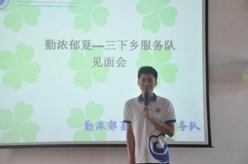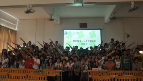 本网讯7月16日早上,广外云山学生勤工助学(下简称“云山勤工”)“勤浓郁夏”三下乡服务队在连滩中学举行了一次服务队与中学学生的见面会。连滩中学陈主任,练书记,学生处黄星老师也出席了本次见面会,对本次三下乡的活动寄予深切的期待。