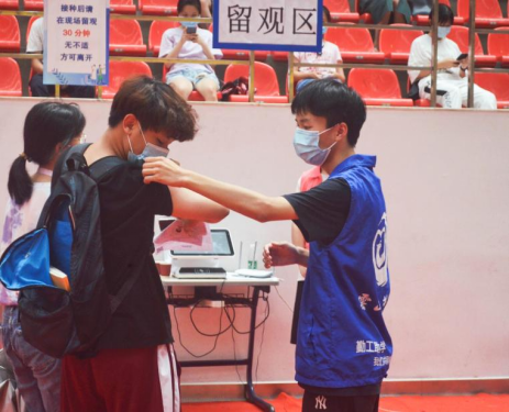 志愿者黄嘉敏:“我不仅看到了医护人员的辛苦付出,也看到了学校的党员队伍、青年志愿者的无私奉献。在暴晒高温的环境下,大家还是有序开展着疫苗接种活动。抗疫靠的是大家的力量,希望大家共同携手度过这个难关。”